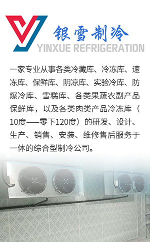 南通銀雪制冷設(shè)備工程有限公司是一家專(zhuān)業(yè)從事各類(lèi)冷藏庫(kù)、冷凍庫(kù)、速凍庫(kù)、保鮮庫(kù)、陰涼庫(kù)、實(shí)驗(yàn)冷庫(kù)、防爆冷庫(kù)、雪糕庫(kù)、各類(lèi)果蔬農(nóng)副產(chǎn)品保鮮庫(kù),以及各類(lèi)肉類(lèi)產(chǎn)品冷凍庫(kù)(10度——零下120度)的研發(fā)、設(shè)計(jì)、生產(chǎn)、銷(xiāo)售、安裝、維修售后服務(wù)于一體的綜合型制冷公司。